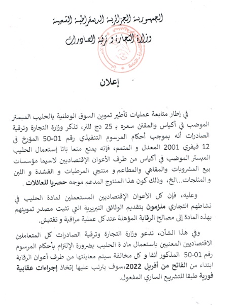 Décret exécutif n° 17-140 du 14 Rajab 1438 correspondant au 17 avril 2017 fixant les condition d'hygiène et du salubrité lors du processus de mise a la consommation humaine des denrées alimentaires .
